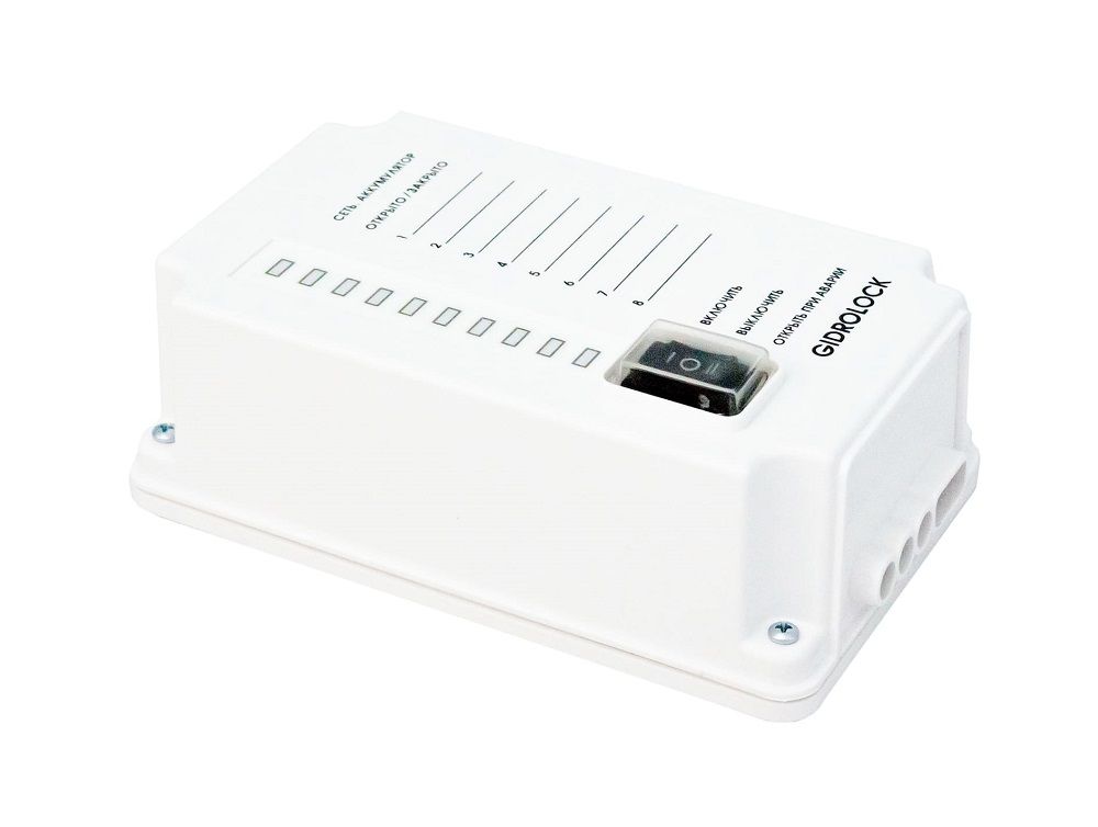 Блок управления является элементом системы GIDROLOCK и предназначен для контроля состояния подключенных к нему датчиков протечки воды, управления шаровыми электроприводами и выдачи звукового оповещение при возникновении аварии в системах водоснабжения и отопления.