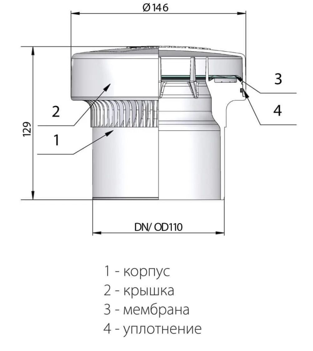При возникновении отрицательного давления в стояке, воздушный клапан дает доступ воздуху, предотвращая, тем самым, выбивание водного затвора из сифонов.