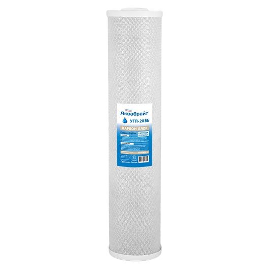 Картридж АКВАБРАЙТ УГП-20 ББ изготовлен из спеченного прессованного активированного угля с пищевым допуском.