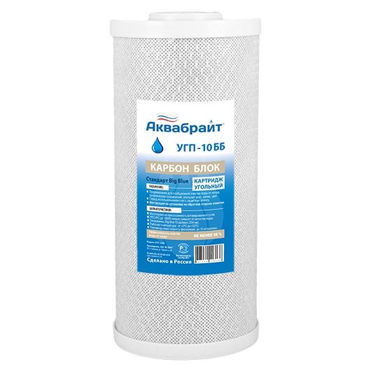Картридж АКВАБРАЙТ УГП-10 ББ изготовлен из спеченного прессованного активированного угля с пищевым допуском.