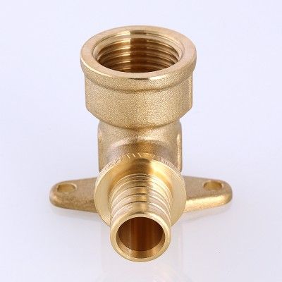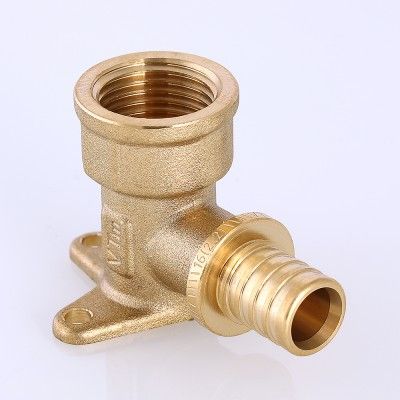 Водорозетка надвижная VTm.454.G – латунный аксиальный фитинг с креплением и внутренней резьбой, который обеспечивает соединение под углом 90° полиэтиленовой трубы и резьбового элемента (в частности, патрубка сантехнического смесителя) монтируемой системы.