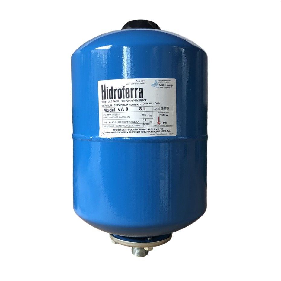 Главная > Каталог > БАКИ > Гидроаккумуляторы > Бак мембранный д./водоснабжения вертикальный VA 8 л. Hidroferra