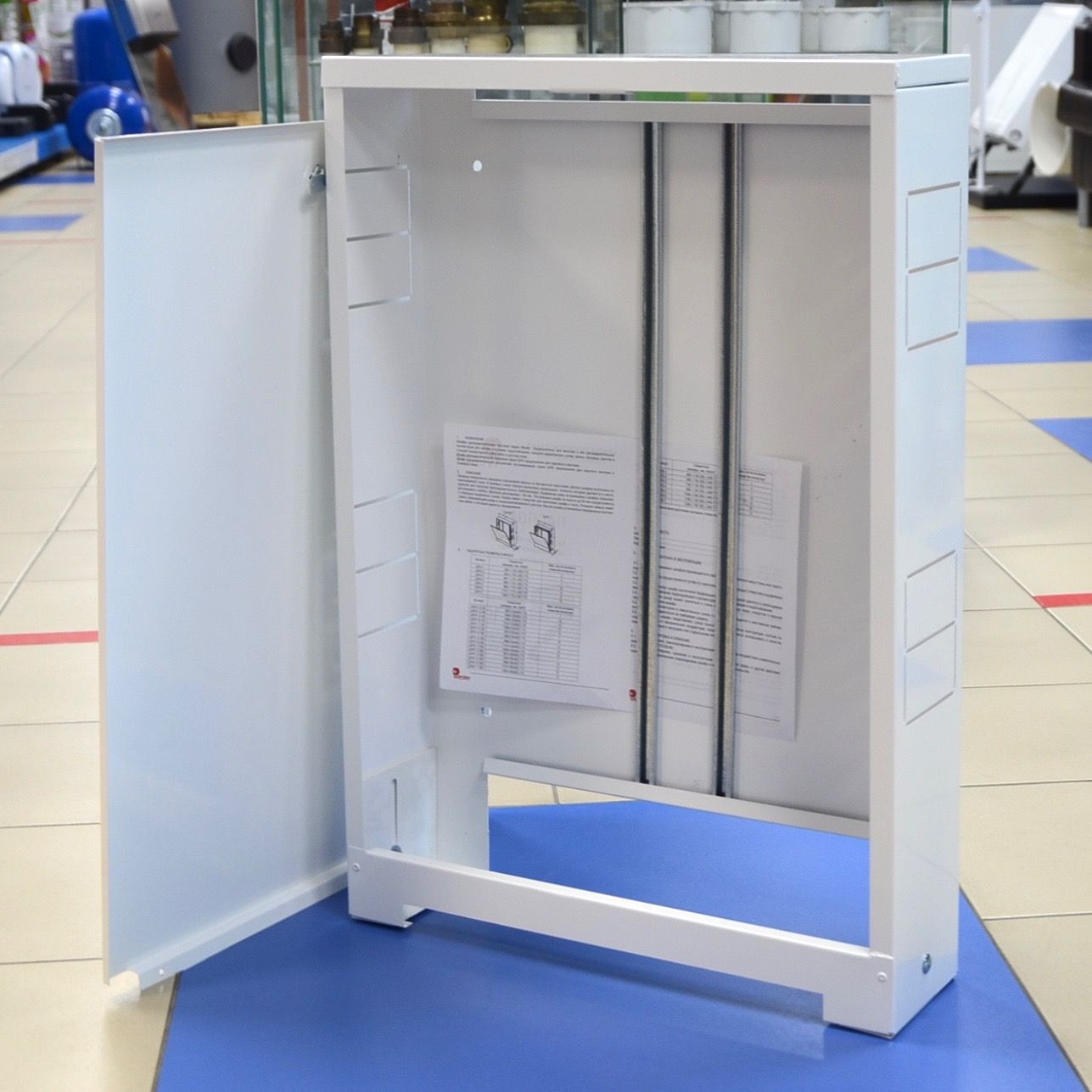 - в боковых стенках корпуса шкафа выполнена перфорация, сегменты которой удаляются в любом удобном месте для подсоединения трубопроводов
