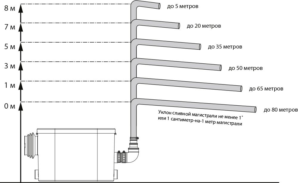 Высота подъема стоков до 8 метров