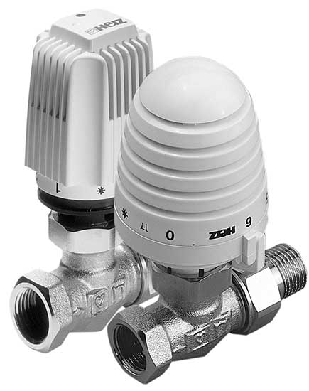 В линейках терморегулирующих клапанов для двухтрубных систем есть и модели без функции преднастройки. В этом случае расход теплоносителя ограничивают с помощью другой арматуры, установленной на выходе из прибора отопления.