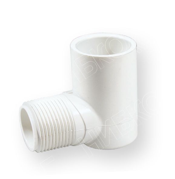 предназначено для соединения трубы ПВХ с другими видами трубопроводов и запорной арматурой посредствам резьбового наружного (РН) соединения под углом 90⁰. Применяется только с неагрессивными герметизирующими уплотнителями.