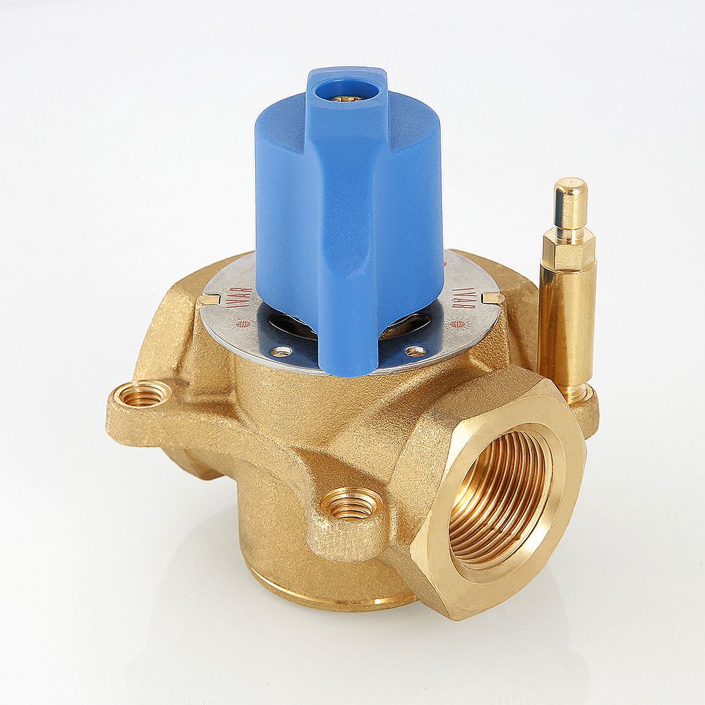 Предназначен для использования в смесительных и разделительных узлах гидравлических систем. Управление клапаном может осуществляться вручную или с помощью сервопривода с крутящим моментом не менее 5 Н•м (рекомендуется модель VT.M.106). Корпус и регулирующий элемент выполнены из латуни, что исключает возможность появления коррозионных отложений в рабочих зазорах. Уплотнение штока достигается с помощью двух колец из синтетического каучука EPDM PEROX. При этом верхнее кольцо легко заменить без полной разборки изделия. Клапан ремонтопригоден и состоит всего из четырех основных деталей, что повышает его надежность. Максимальная рабочая температура теплоносителя – 120 °C, нормативное давление – 10 бар. Резьба присоединений – внутренняя. Условные диаметры предлагаемых моделей – 3/4, 1, 1 1/4". Ручка управления входит в комплект.