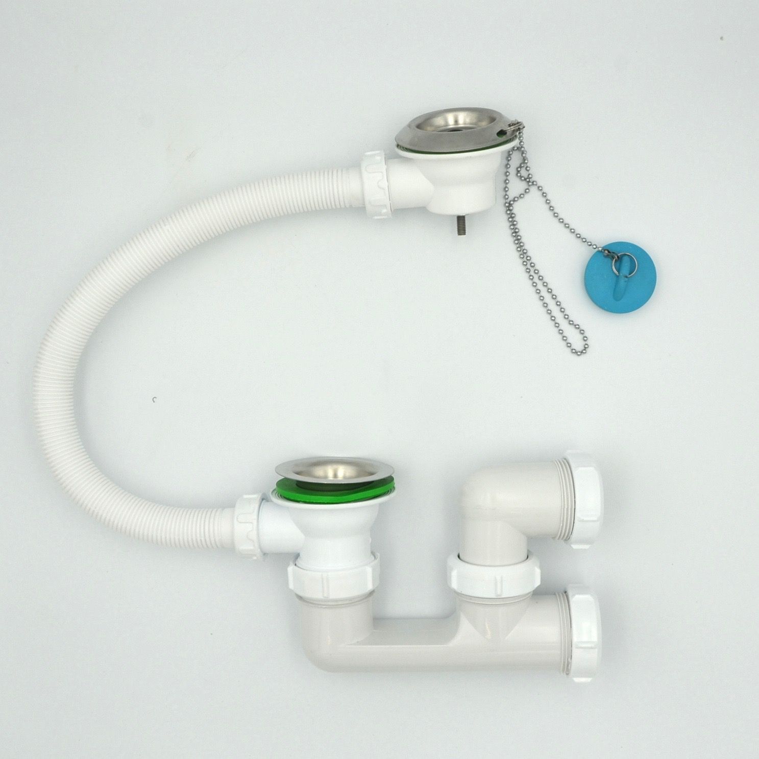 применяется для слива использованной воды в канализационный сток. Сифон оснащен переливом. Диаметр регулируемого слива 40 мм. В комплект входит пробка с цепочкой.