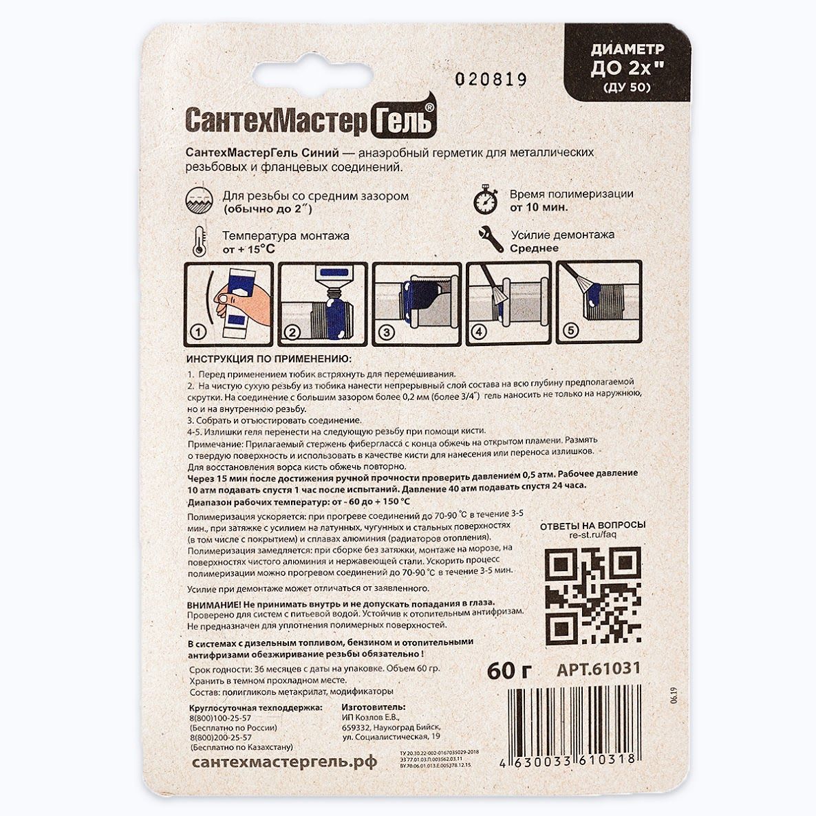 Синий — это резьбовой герметик для сантехники со средней степенью фиксации соединения. Данный состав рекомендован к использованию для герметизации металлических резьб, фитингов и фланцев. Используется для соединений диаметром до 2". Соединение, собранное на данный гель поддается демонтажу с использованием инструмента.